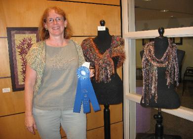 | A professional fiber artist for over 20 years, Marci Blank has delighted (and warmed!) many art patrons with her wearable designs. First taught to knit by her third grade teacher, Marci now expands the basics with other fiber techniques as well as embellishments. Today, the actual knitting is but a part of each piece. Marci's talent for blending colors of interesting yarns with her unique designs give her creations their own essence. Each of Marci's creations is an extension of individual choice and each piece assumes its own identity during the creation process. Every garment is unique because of the interplay of colors, patterns and textures that evolve into the finished product. When worn, the fiber piece becomes an expression of the wearers' own individuality. From conception to finished product, Marci is constantly working to find the right blend of style and function that will appeal to the individuality in each of us. Some garments feature hand spun yarn, some are hand dyed. All are created at the Th'Red Head studio, one piece at a time. Marci's work can be seen throughout the year at Kansas City area art fairs. Currently a member of the Association of Knitwear Designers, The Knitting Guild of America, Kansas City Weaver's Guild, The Fiber Guild of Greater Kansas City, and the Lawrence Art Guild, Marci has won many awards for her unique designs. |